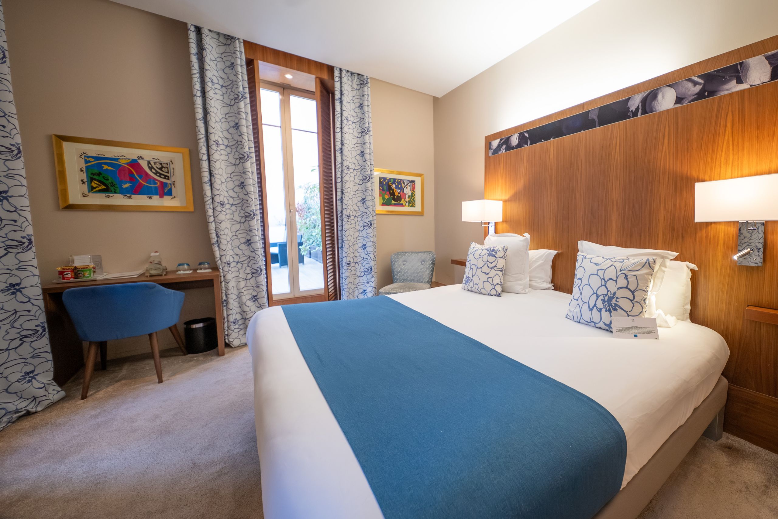 Les 114 chambres de cet hôtel intimiste, fidèle à son identité niçoise, sont conçues pour créer un cocon douillet et chaleureux pour une expérience empreinte de calme et de sérénité.